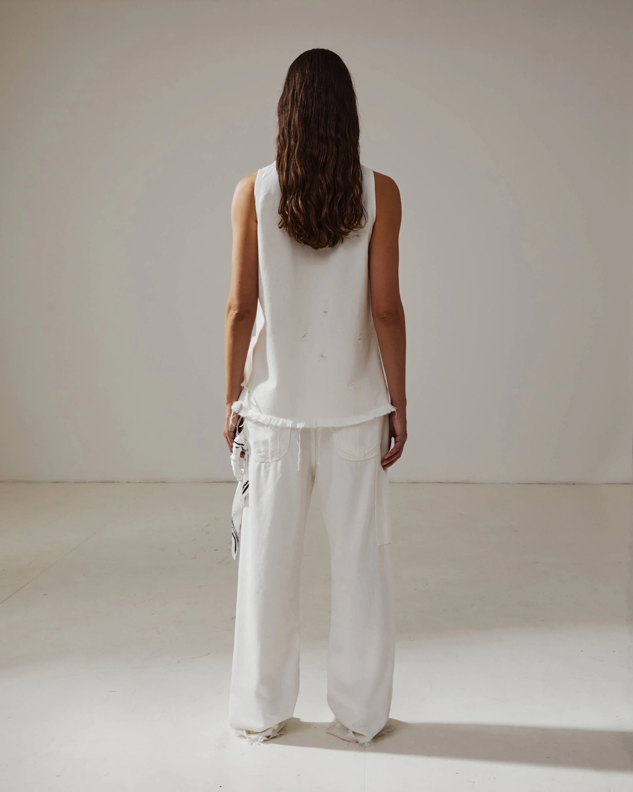 IVY tank top in washed white tencel denim.