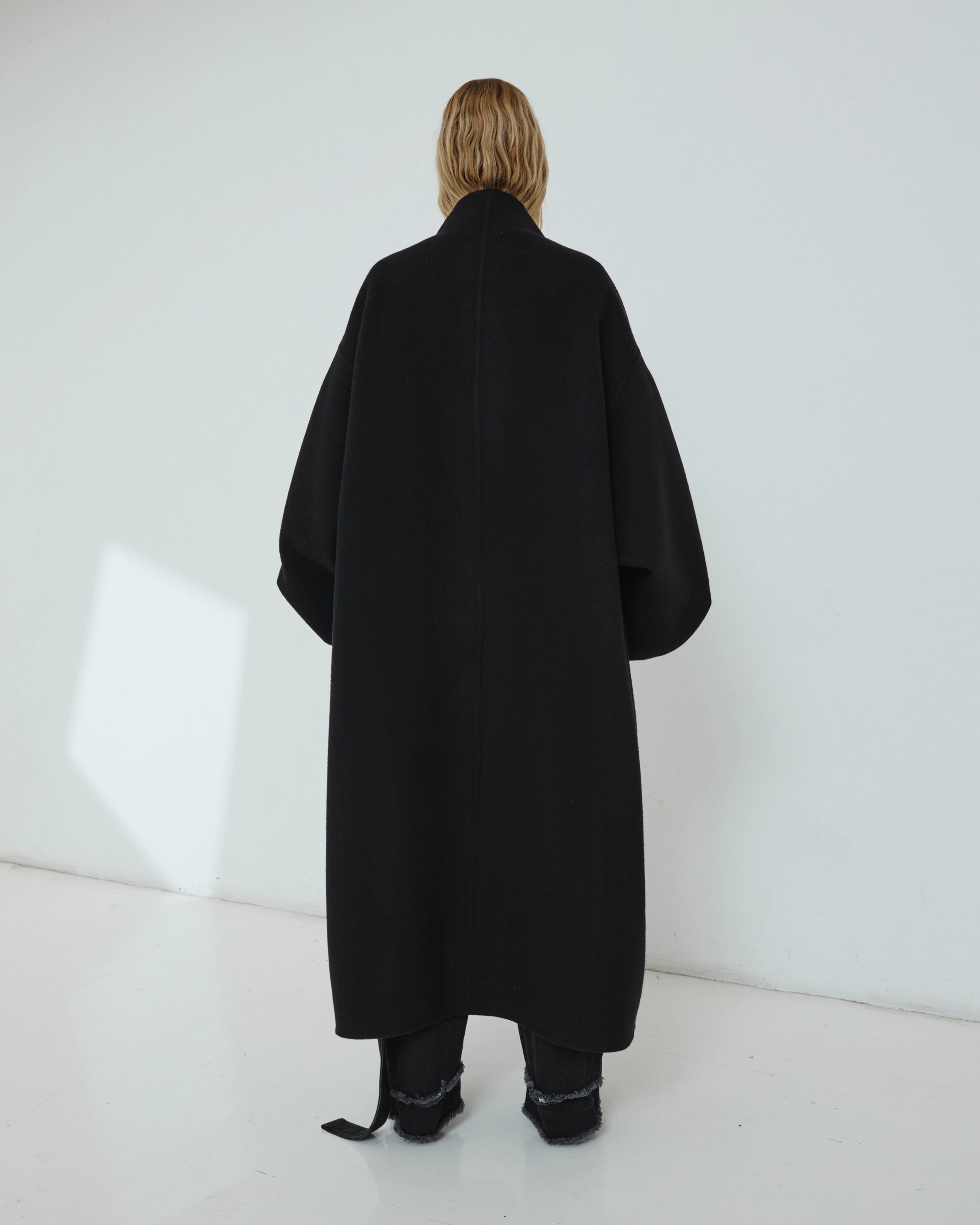 NORTH oversize cashmere wool coat in black.